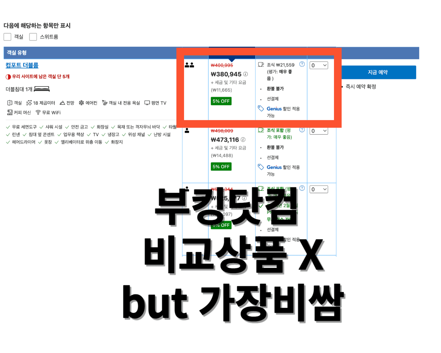 부킹닷컴 가격 확인하기