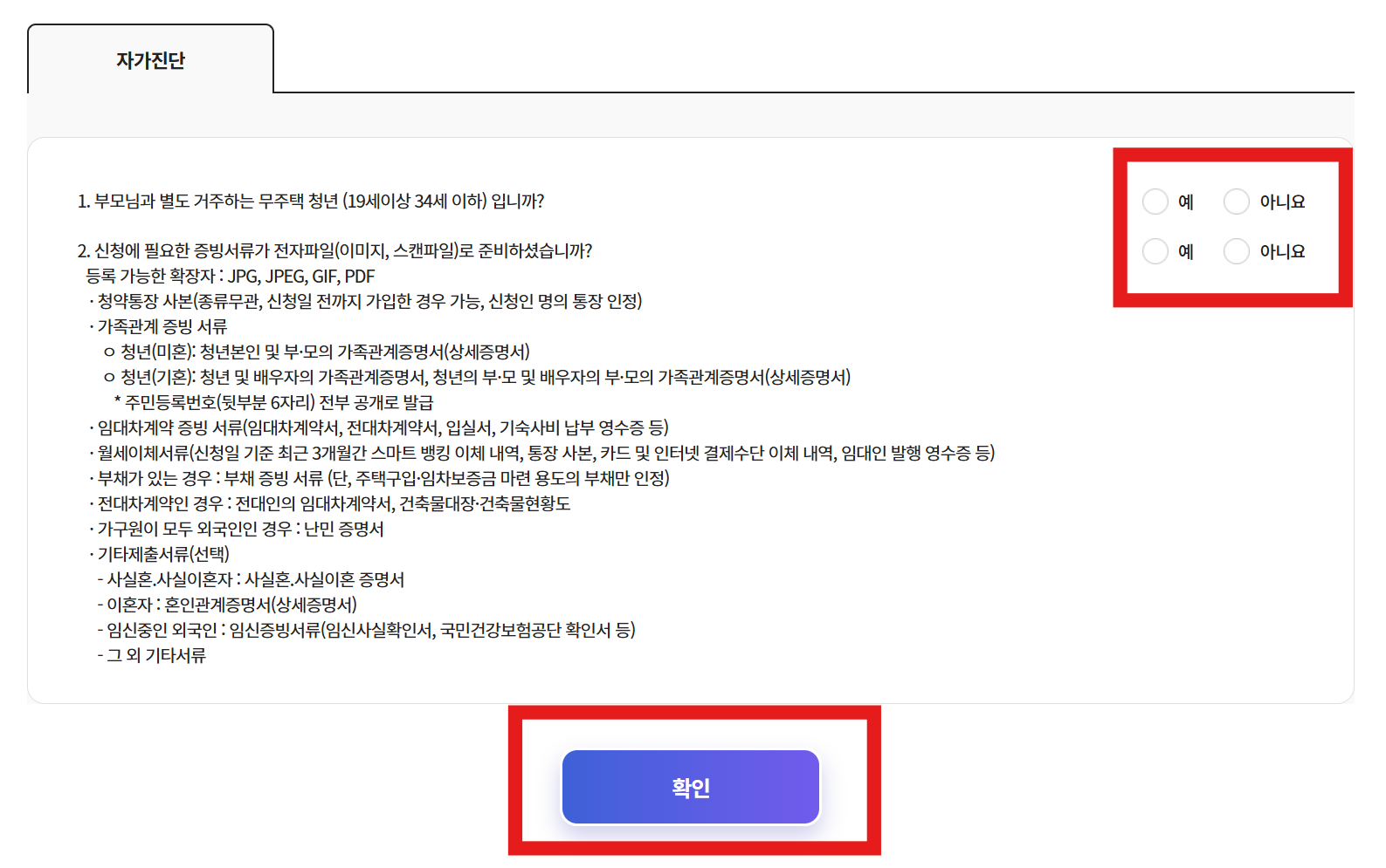 - 원가구: 청년독립가구 및 1촌 이내 직계혈족(부모 모두)