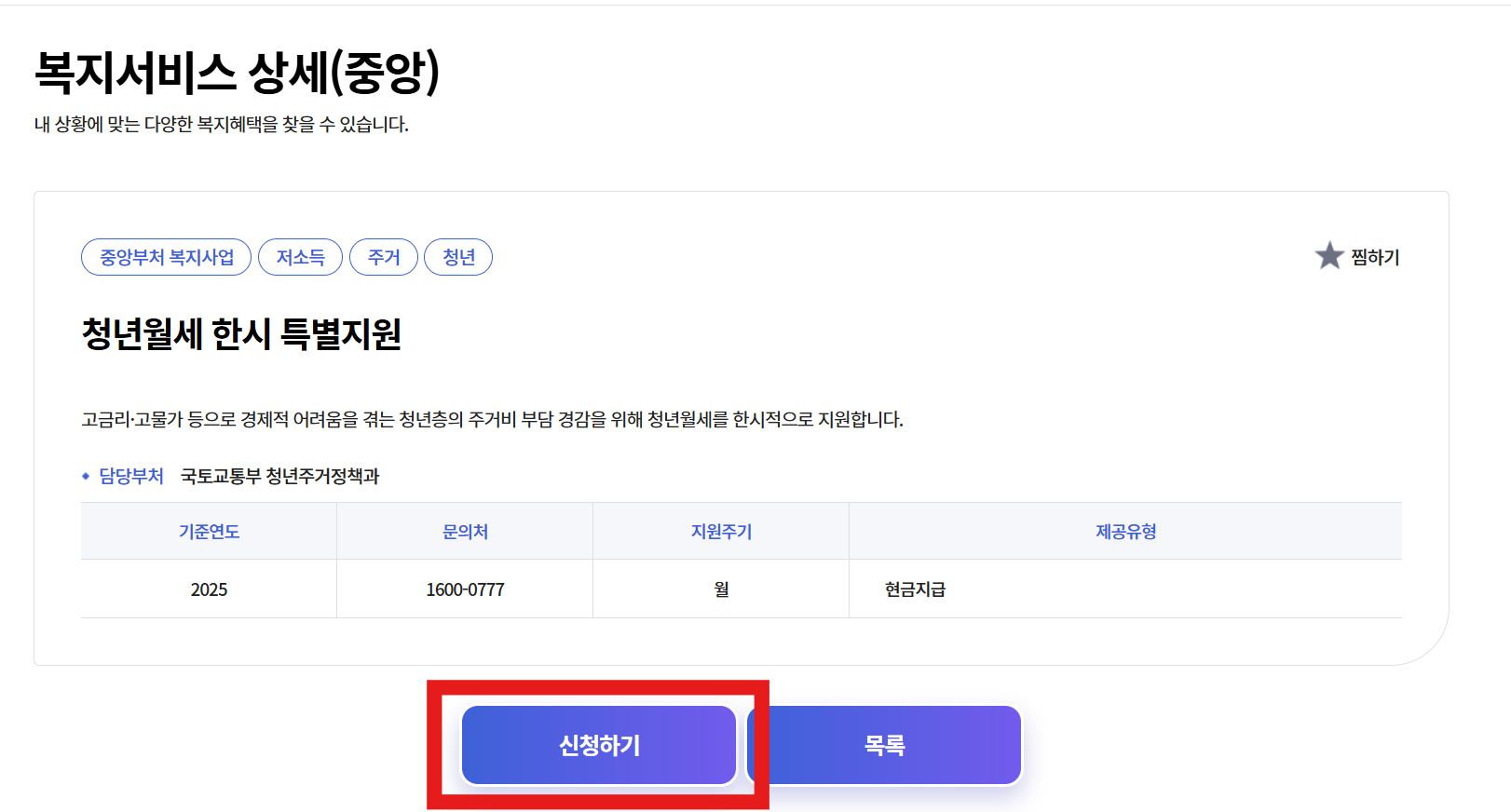 - 담당부서 : 국토교통부 청년주거 정책과