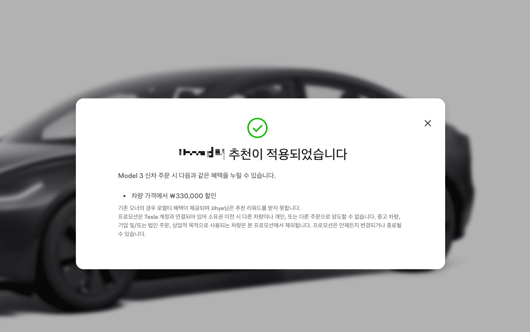 (1) 레퍼럴 코드로 할인받고 테슬라 결제하기