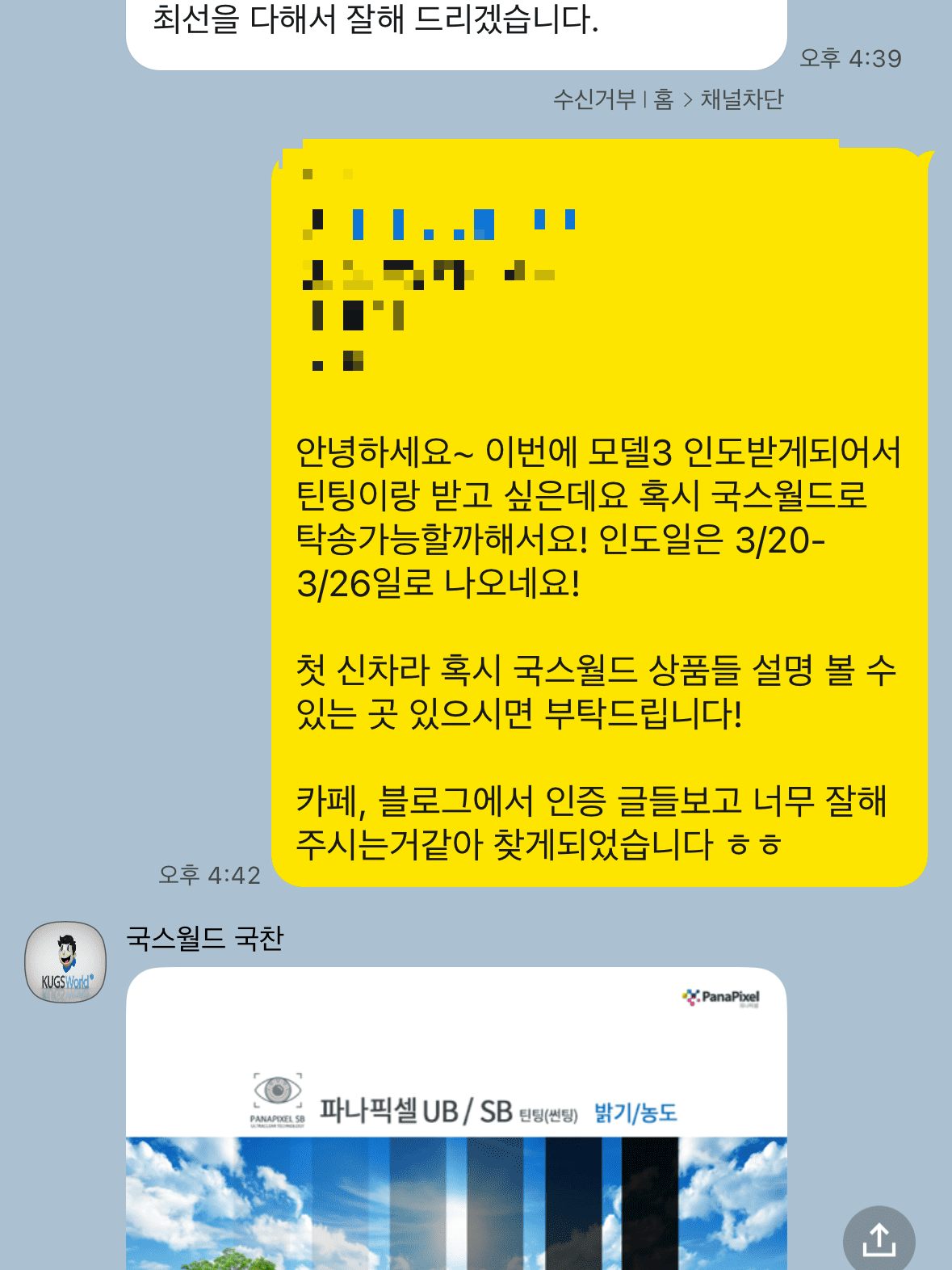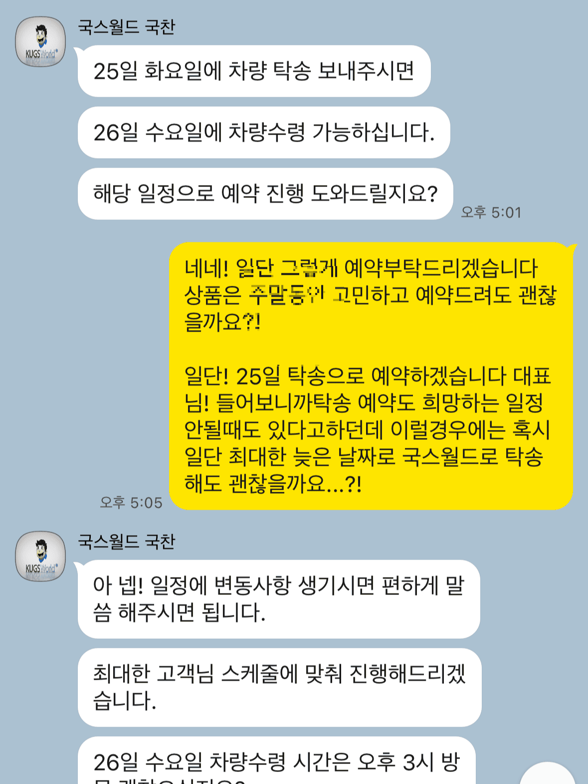 예약해 놓았던 틴팅샵에다가 확정 안내를 하고, 차량번호와 일정을 전달합니다. 예전에는 탁송 시에 서류절차가 또 있었다고 하는데 지금은 없습니다. 저는 틴팅샵 성지라고 일컬어지는 국스월드에서 진행했습니다.