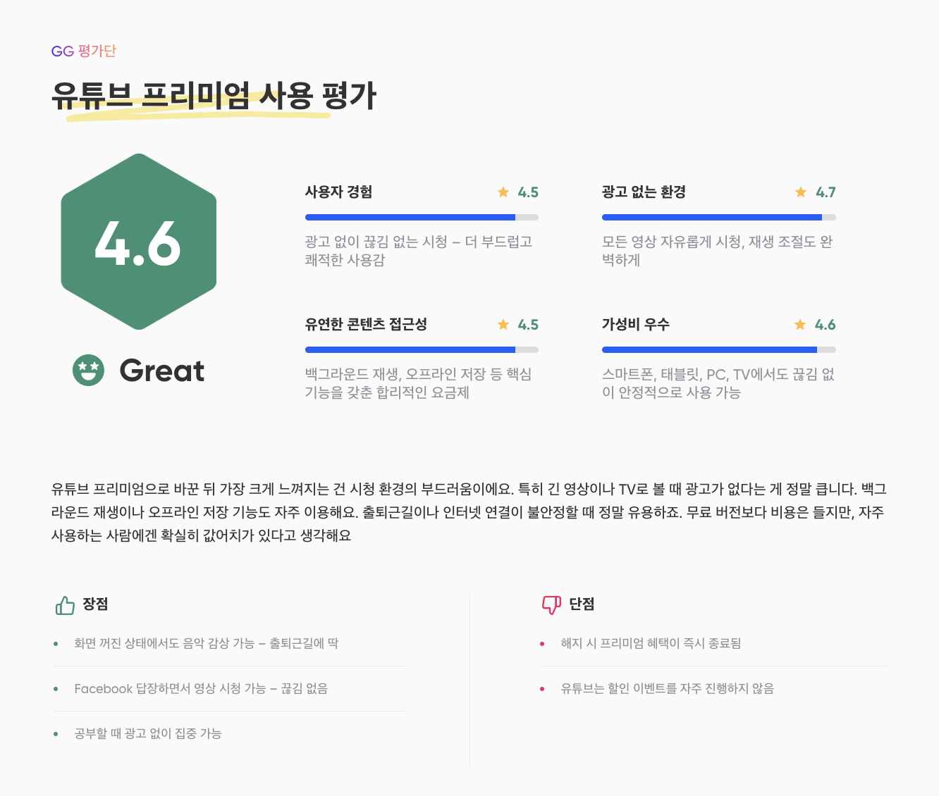 - 혜택 동일: 광고 제거, 백그라운드 재생, 오프라인 저장, YouTube Music 포함 등 동일 혜택 유지.