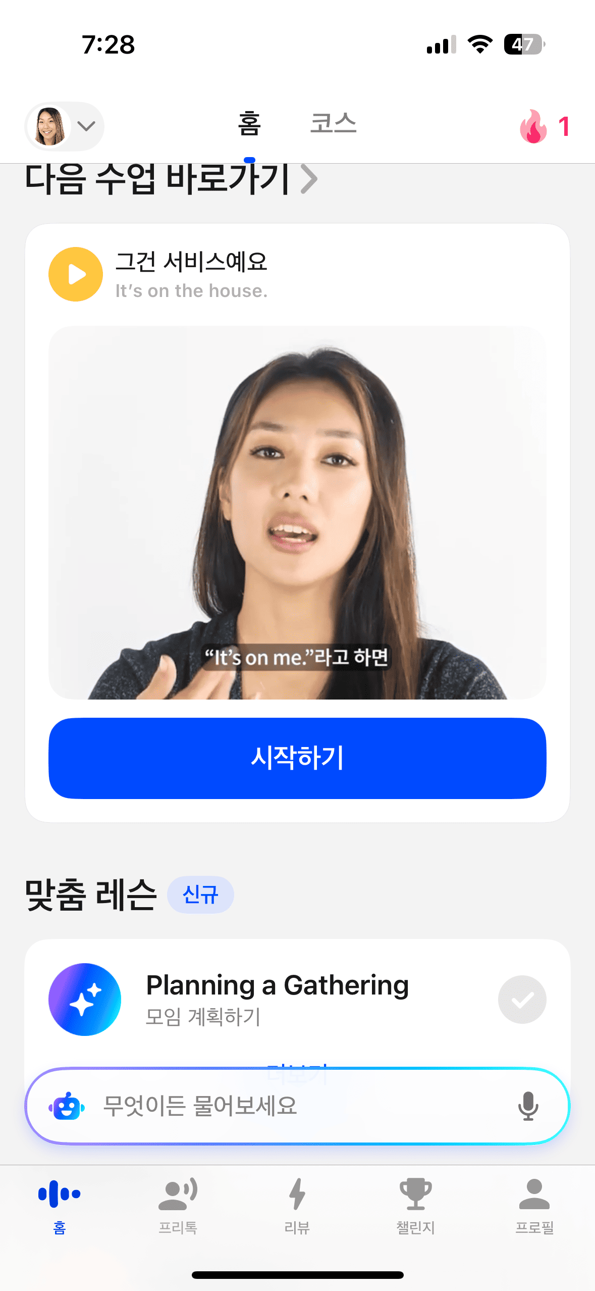 다만 단점도 분명합니다. 스픽은 ‘완벽한 문장’을 만들어주는 앱이라기보다, 일단 입을 열게 만드는 앱입니다. 문법을 깊게 파고드는 타입이거나, 사람과 실시간 대화가 꼭 필요한 분은 다른 선택지가 더 맞을 수도 있습니다.