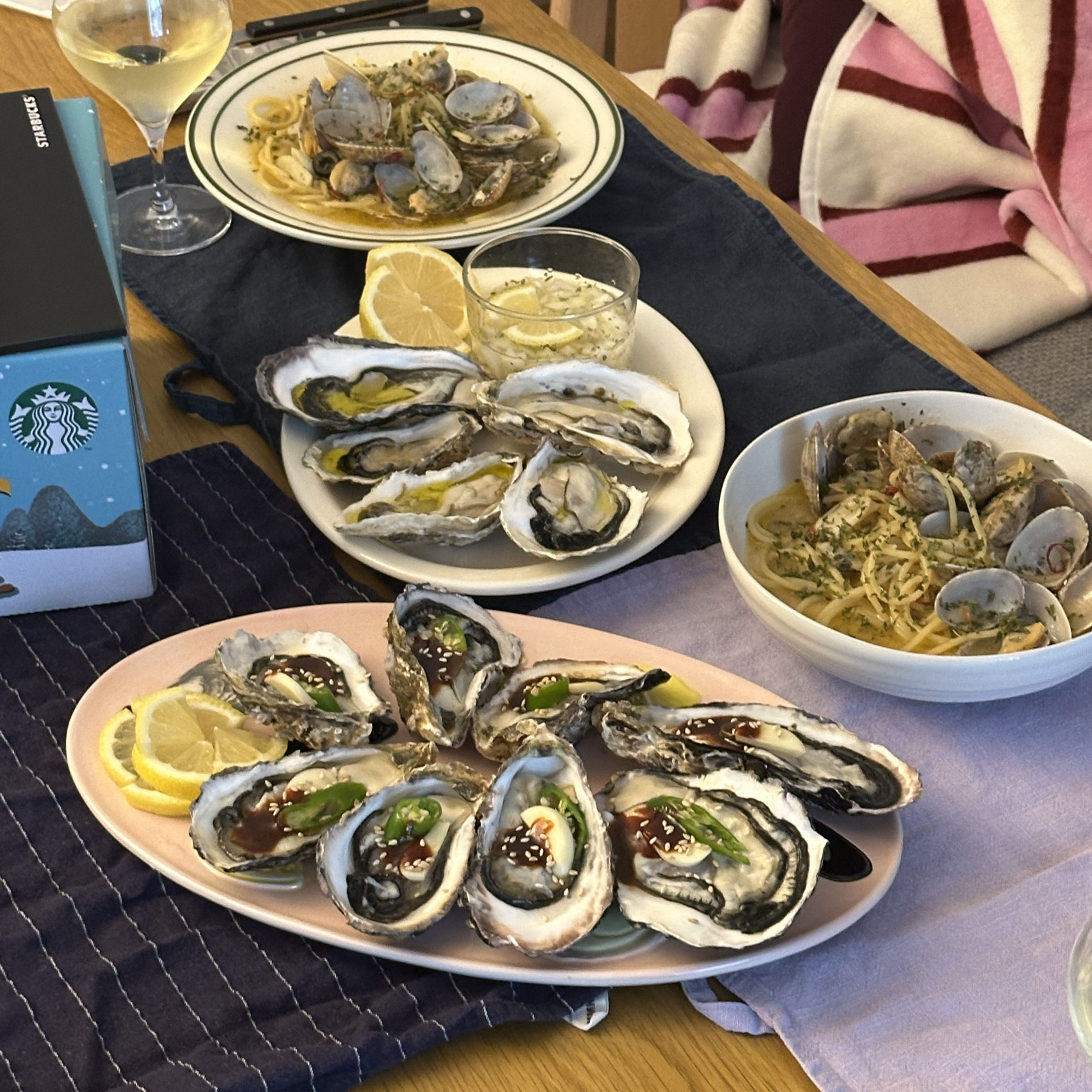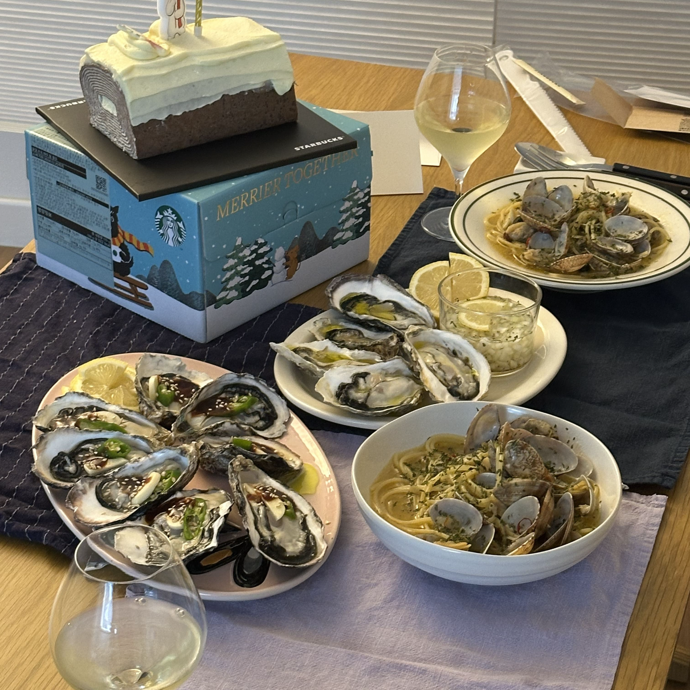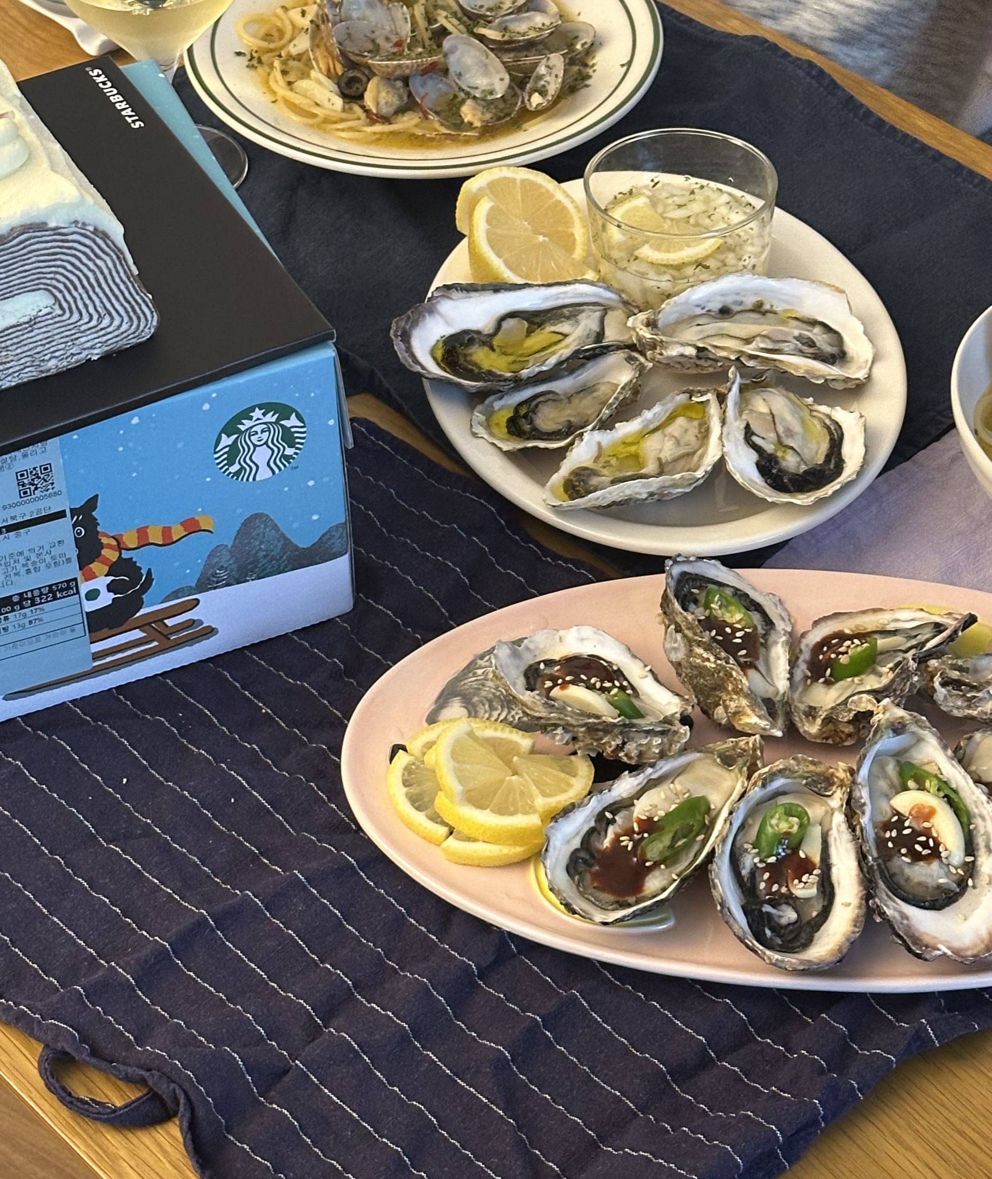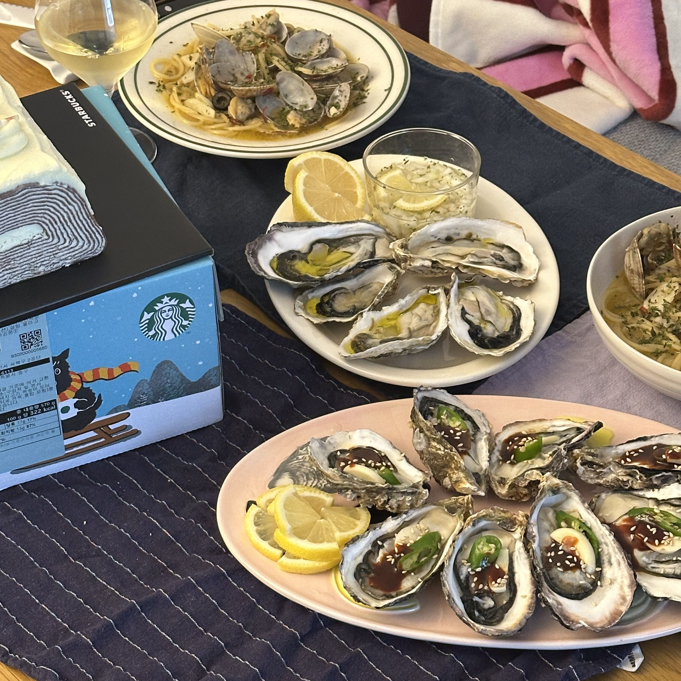 이번 크리스마스 때는 석화와 알리오올리오를 만들어 함께 먹었는데요. 마실 때마다 느끼는 건 좋은 밸런스로 다른 음식들과 잘 어울린다는 생각입니다. 개인적으로 특히 자극적인 음식을 자주 해 먹는데, 고루고루 잘 어울립니다.
