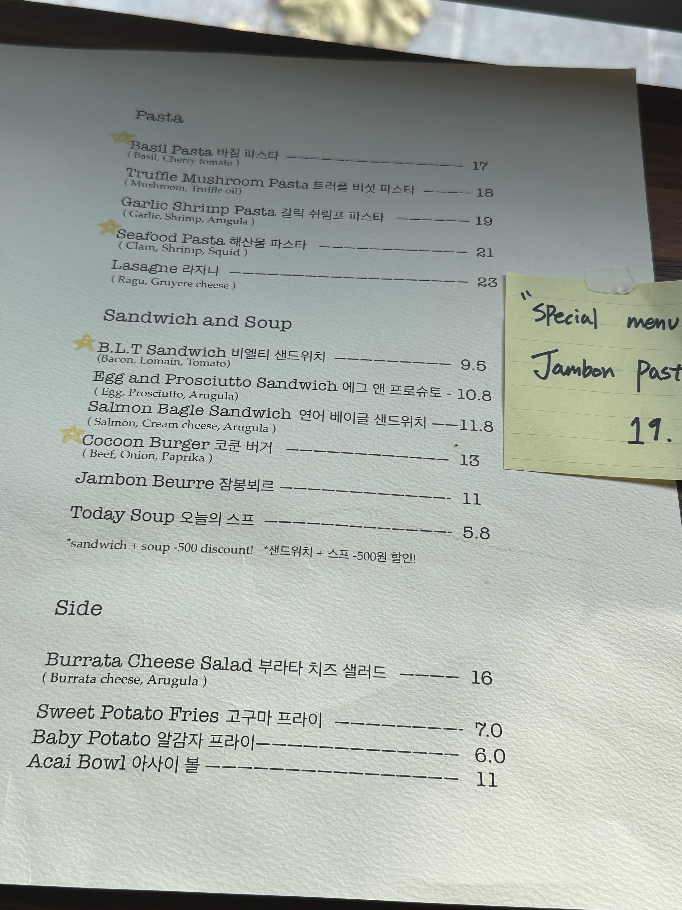 샌드위치와 파스타를 먹고 계셨습니다.
