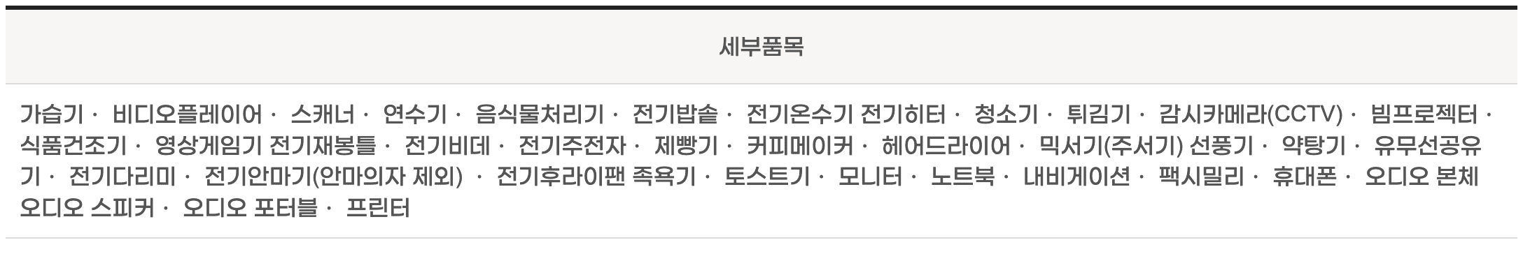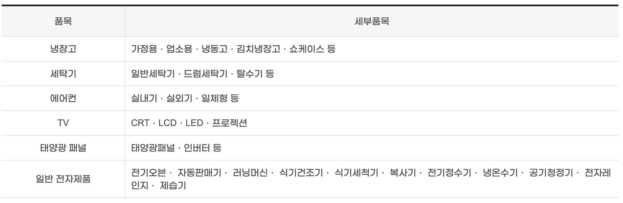 폐가전 수거 품목 및 기준