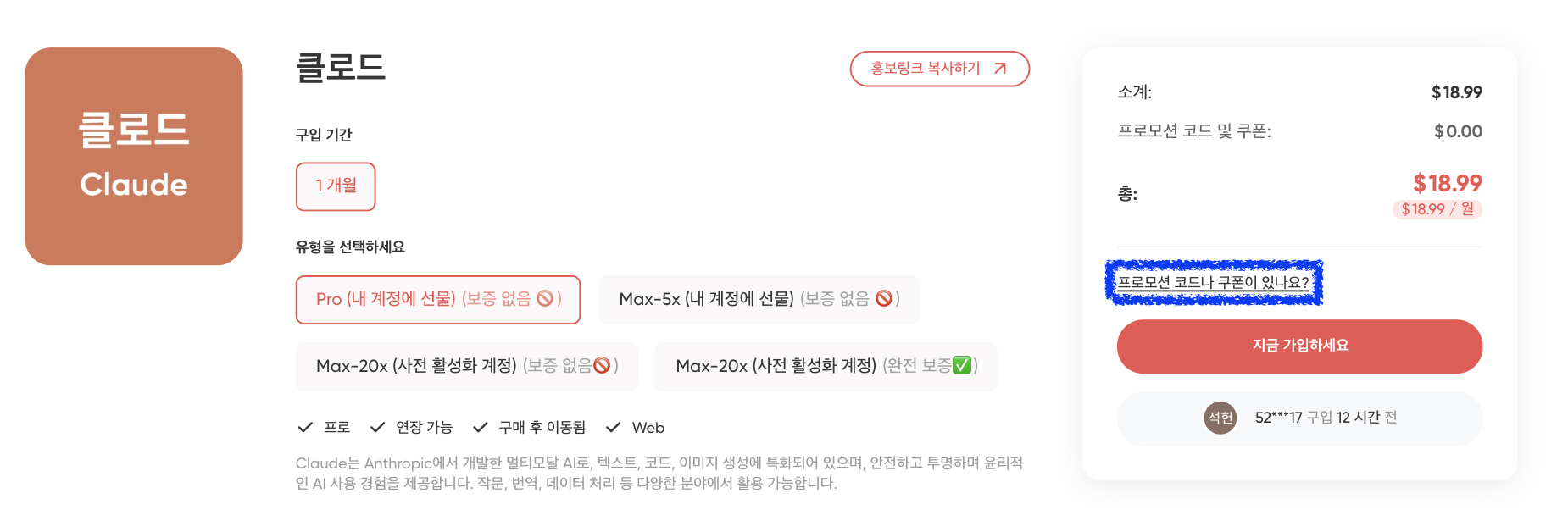 클로드도 똑같습니다. 보장됨/리뷰/발송시간/제공 방식만 확인해도, 불안이 크게 줄어듭니다.