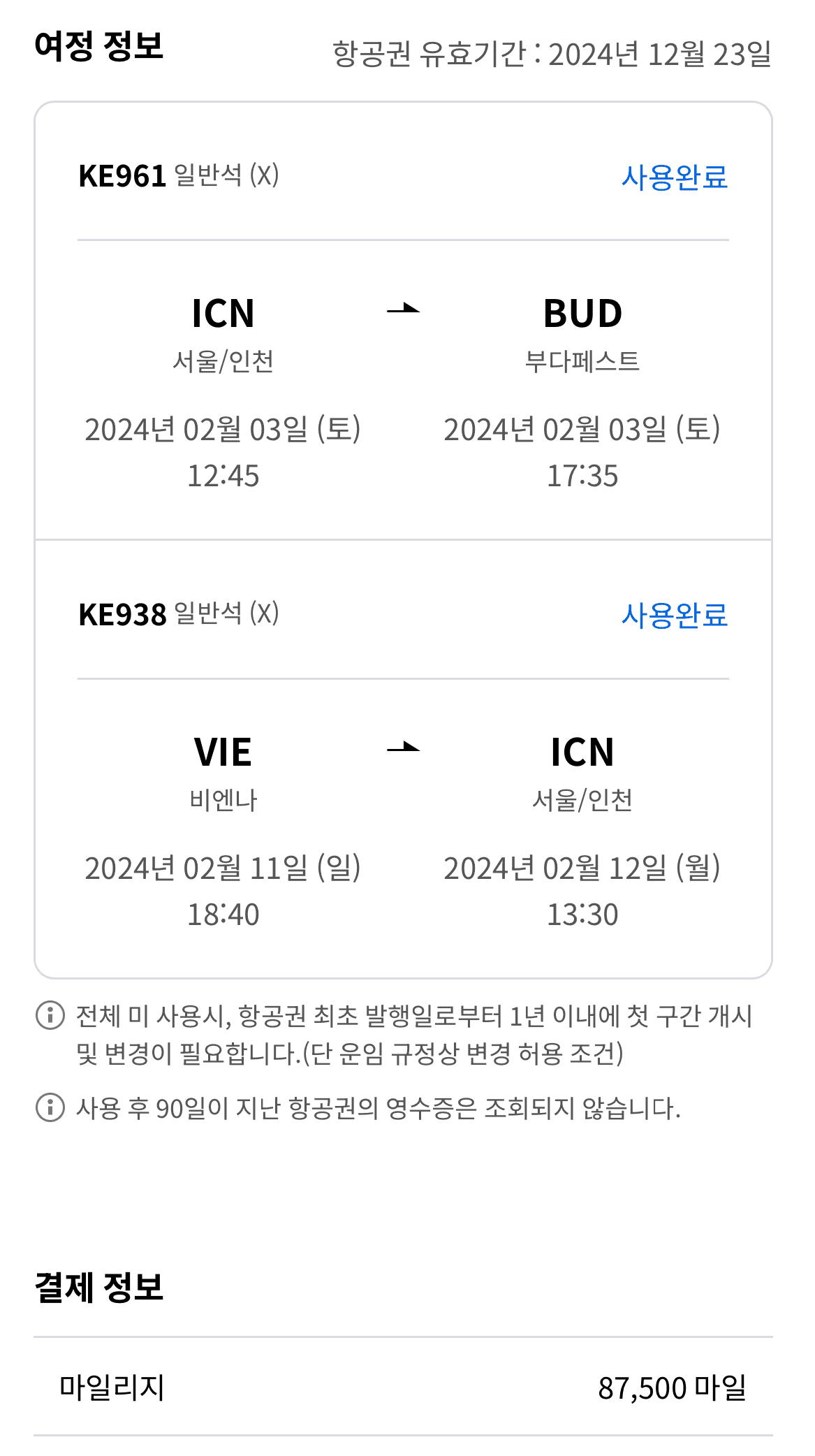 2번의 여행 모두 예약 대기로 우선발권을 통해 다녀온 여행입니다. 마일리지 표가 다 차있다고 해서 너무 놀라시지 않으셔도 됩니다.