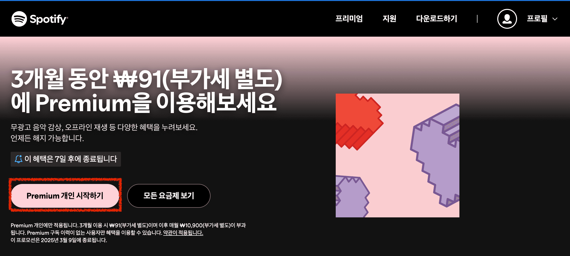 다들 무료라고 하시니까 불법적인 경로이거나 계정을 정지당할 수 있다고 생각하십니다. 하지만 스포티파이 무료 구독 방법은 스포티파이의 정식 이벤트 프로모션을 활용한 방법이니, 제가 알려드리는 방법을 하나씩 따라 해보세요. 굉장히 쉽습니다.